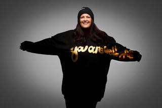 MODEL: Sarah is 5'3" and a size 22-24 wearing Black & Gold Sweat in XL.