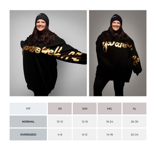 We have sized our sweats so you can choose how you want them to fit. Wear like a standard jumper or go oversized. Either way you will look WELL FIT. See below for a rough guide.