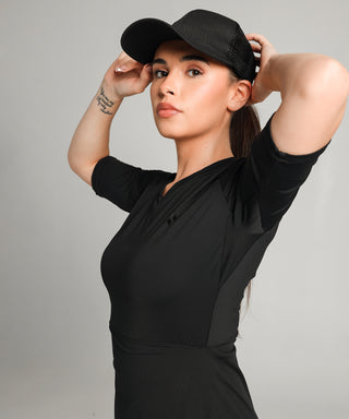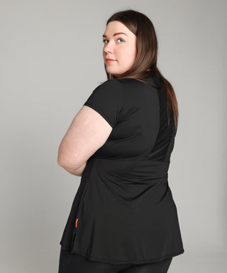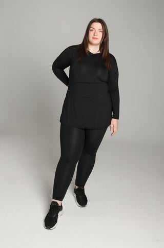 A lightweight, tunic length training top featuring our unique design cinch panel underneath the top layer, that you can tuck into your leggings giving you the freedom to burpee, jump or give that difficult yoga move a try knowing that you are covered and supported.