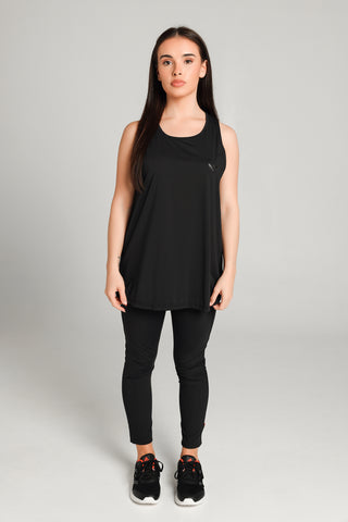 A feather-weight technical fabric with a loose fit and long length, perfect for a HIIT work out, pilates or spin class.